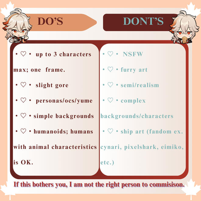 comms: details i will mostly be taking commissions over breaks :) (DEC23 - JAN3) and (APR14 - APR18)
